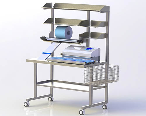 – الفولاذ المقاوم للصدأ طاولة العمل الخاصة متعددة الوظائف مع قطع الورق.