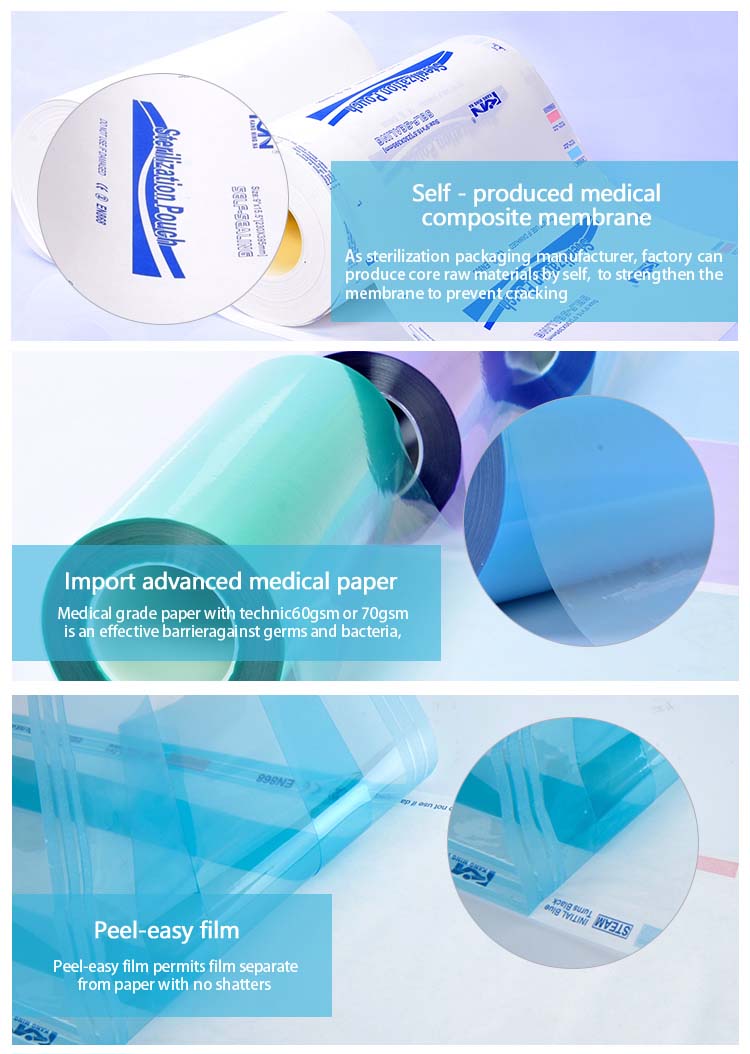 تُعرف أيضًا باسم بكرات التعقيم ، ولفة التعقيم وما إلى ذلك ، وهي مصنوعة من ورق طبي وشفاف PET / PP متعدد الطبقات من البوليمر المشترك. مؤشرين مائيين غير سامين للعملية للتعقيم بالبخار وأكسيد الإيثيلين