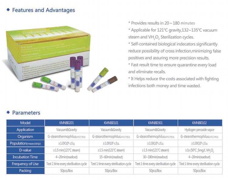 المؤشرات البيولوجية KMNPack هي نوع خاص من المنتجات الميكروبية الحية التي يمكن استخدامها لتأكيد أداء معدات التعقيم ، والتحقق من إجراءات التعقيم ، ومراقبة آثار التعقيم في الإنتاج